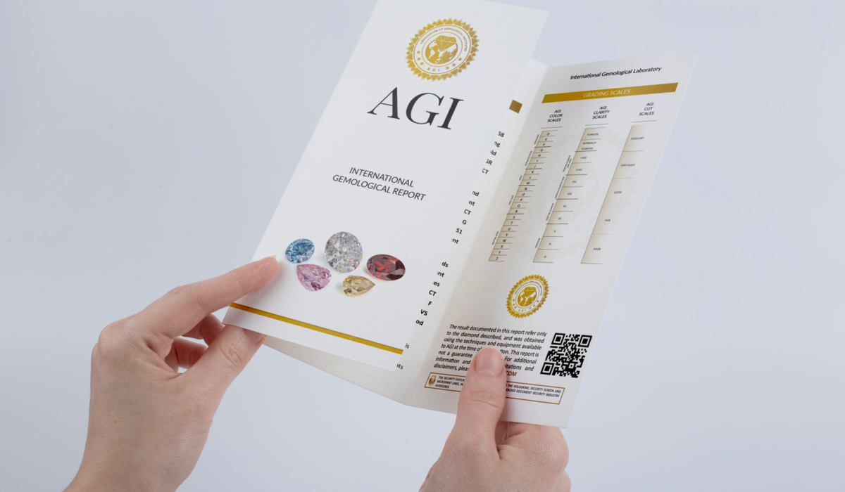 The acquisition of a diamond or precious gemstone can be an important expression of love or accomplishment that simultaneously represents a major investment. It is essential for a diamond proprietor to have certification of the characteristics of the diamond in order to obtain confidence in the integrity of what they have acquired. An AGI Report is a statement issued by one of our independent gemological laboratories documenting the characteristics of the stone as determined by our experienced diamond graders at the time of evaluation.